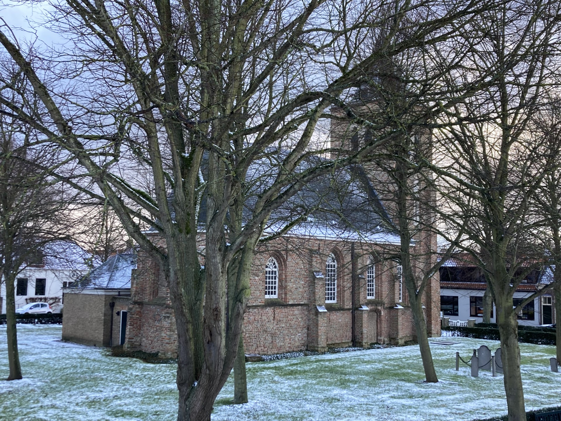 Vanuit je kamer heb je uitzicht op de monumentale kerk. Die zal je in de zomer niet zo goed zien als op dit winterse plaatje.