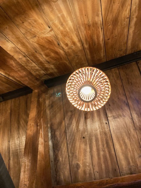 De badkamer heeft een leuke houtlook